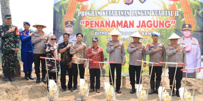 Dalam rangka mendukung program ketahanan pangan nasional, Ditpolairud Polda Banten melaksanakan kegiatan penanaman jagung kuartal II tahun 2026 di Kelurahan Bagendung, Kecamatan Cilegon, Kota Cilegon pada Kamis (23/04-2026).